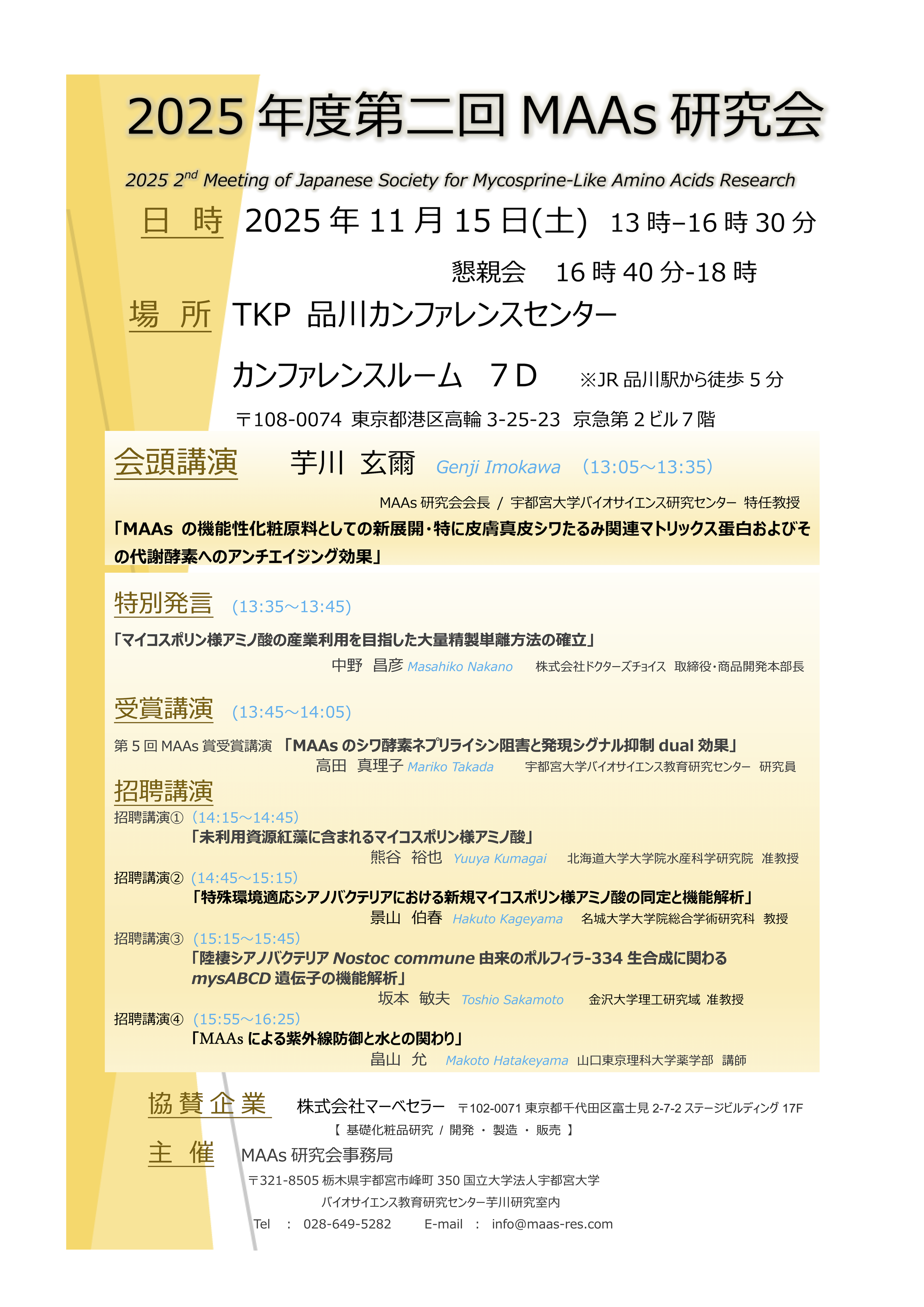 - 2025年度第2回 MAAs研究会のお知らせ。PDFファイル